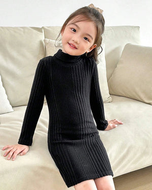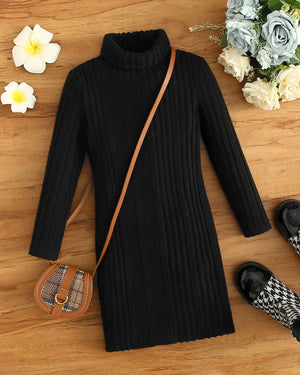 Girls Knitted Turtleneck Dress – Soft Rib Fleece