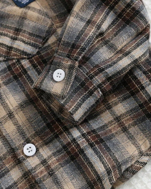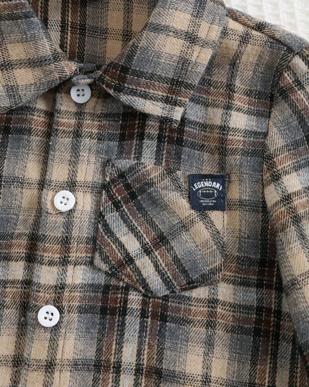 Stylish baby boy shirt with a classic houndstooth print, long sleeves, and an open-front design. Features a smart collar and versatile casual look, perfect for autumn and winter daily wear, outings, or family gatherings.