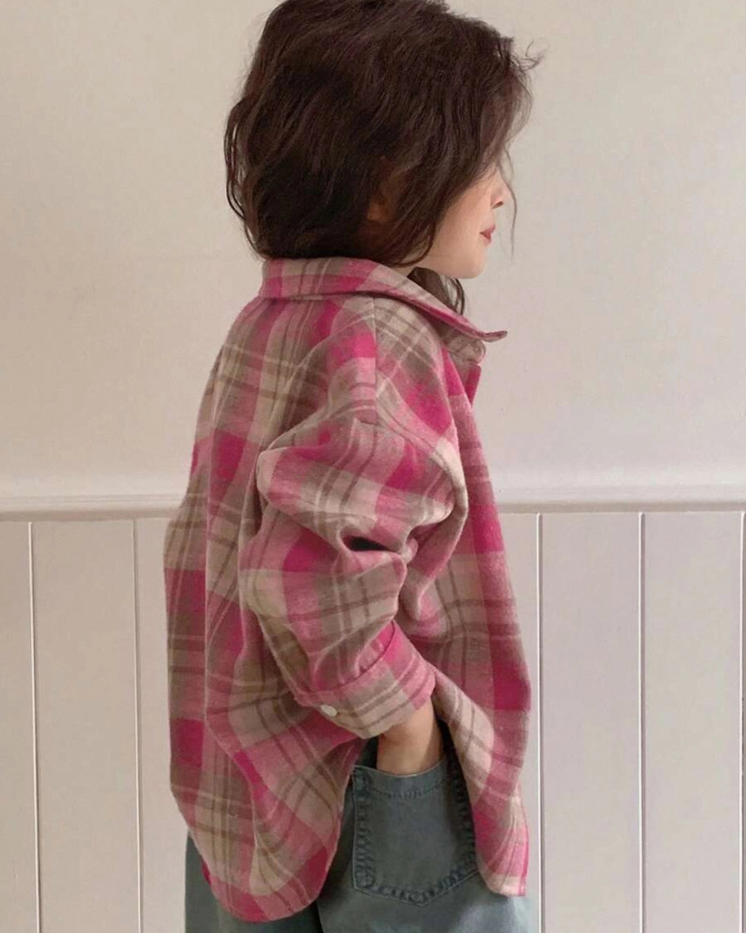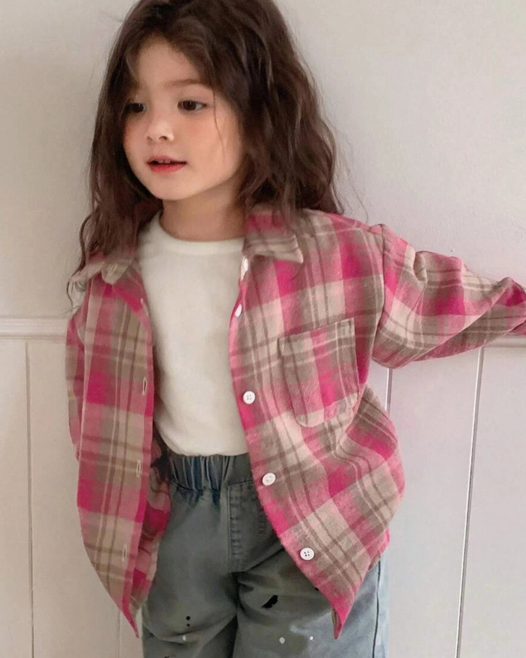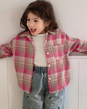 Girls Plaid Long Sleeve Shirt – Korean Style