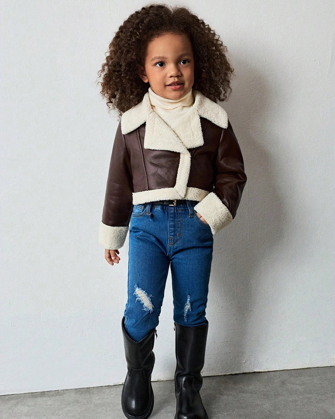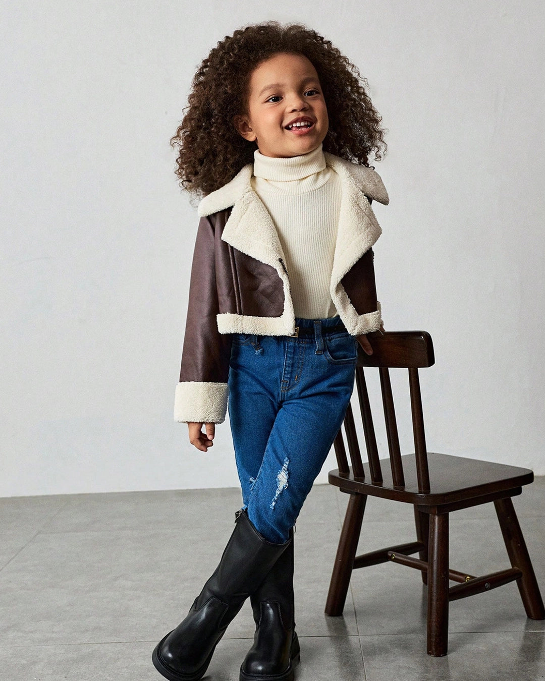 Girls Faux Fur Collar Jacket