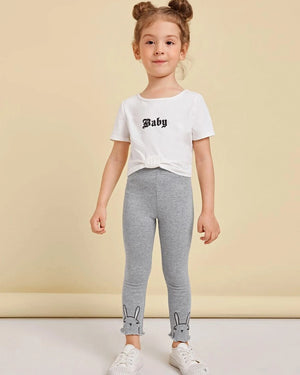 SHEIN Young Girl Rabbit Embroidery Lettuce Trim Leggings