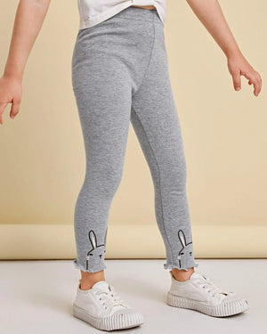Girls' Rabbit Embroidery Lettuce Trim Leggings