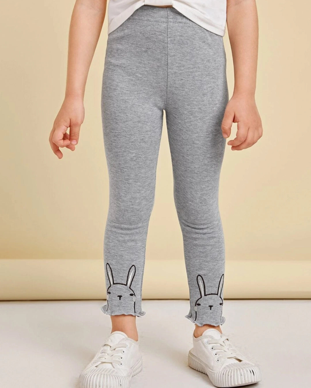 Home Girls Pants Girls' Rabbit Embroidery Lettuce Trim Leggings