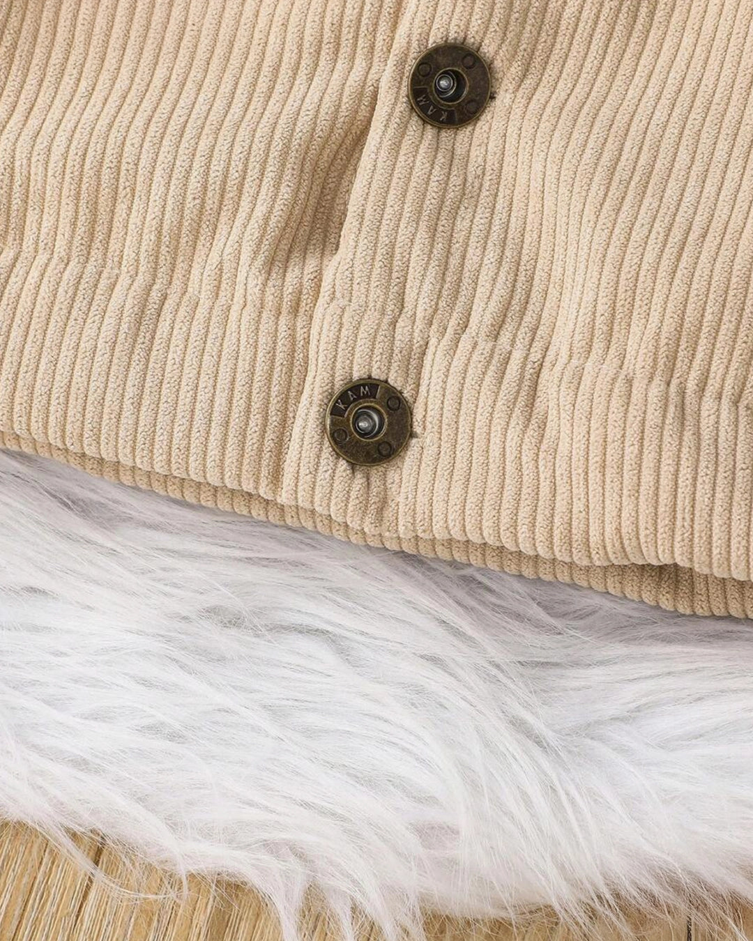 Kids Baby Girl - Boy Flap Detail Thermal Lined Corduroy Jacket