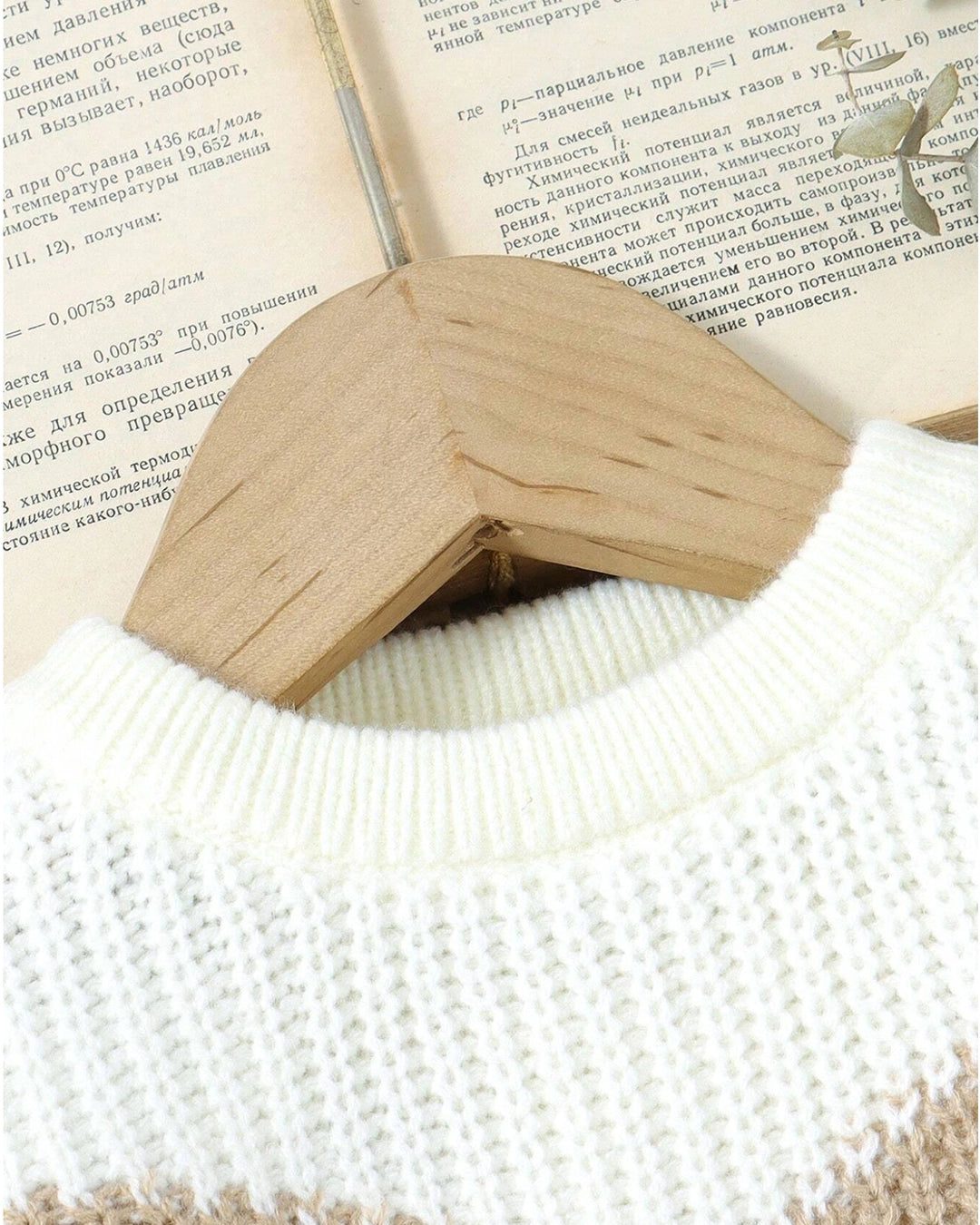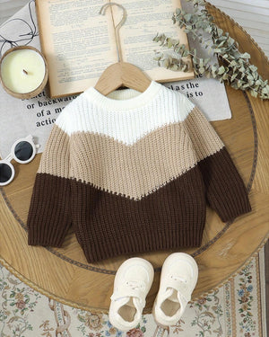Soft and cozy baby boy pullover with patchwork design and crew neck. Ideal for everyday comfort and warmth.