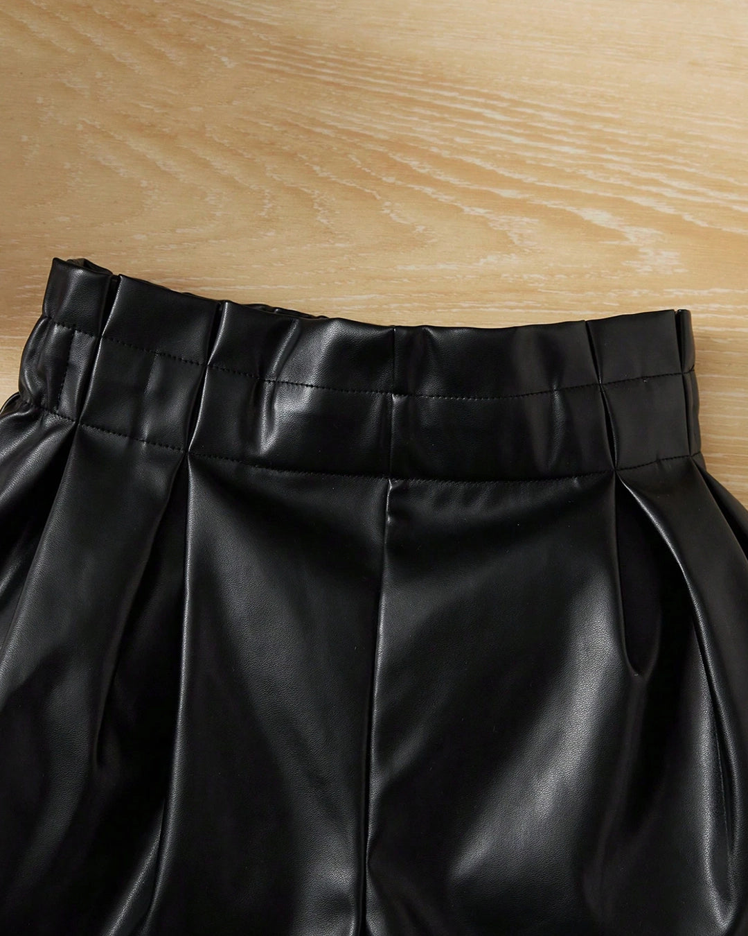 Girls' Faux Leather Shorts – Autumn Daily Wear