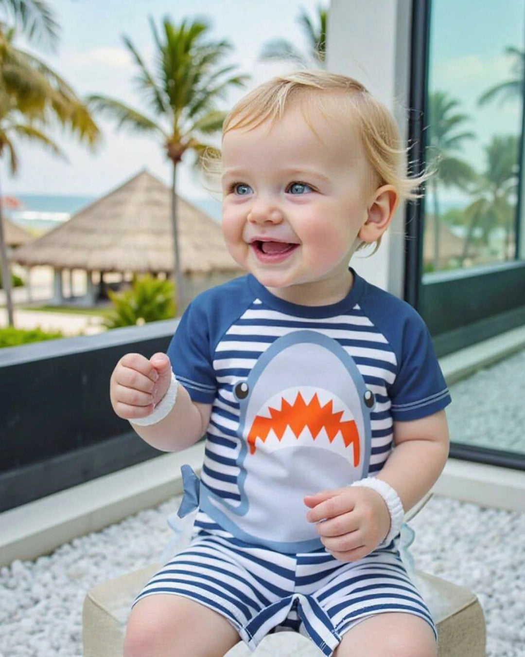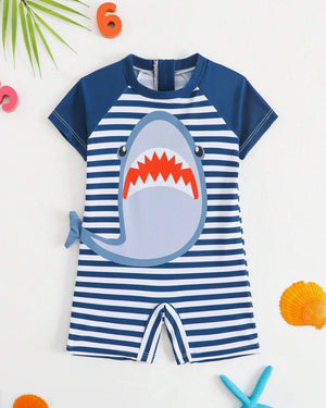 SHEIN Baby Sailor Print Short Sleeve Romper