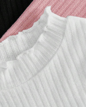 Girls 3pcs Ribbed Knit Lettuce Trim Tee Set