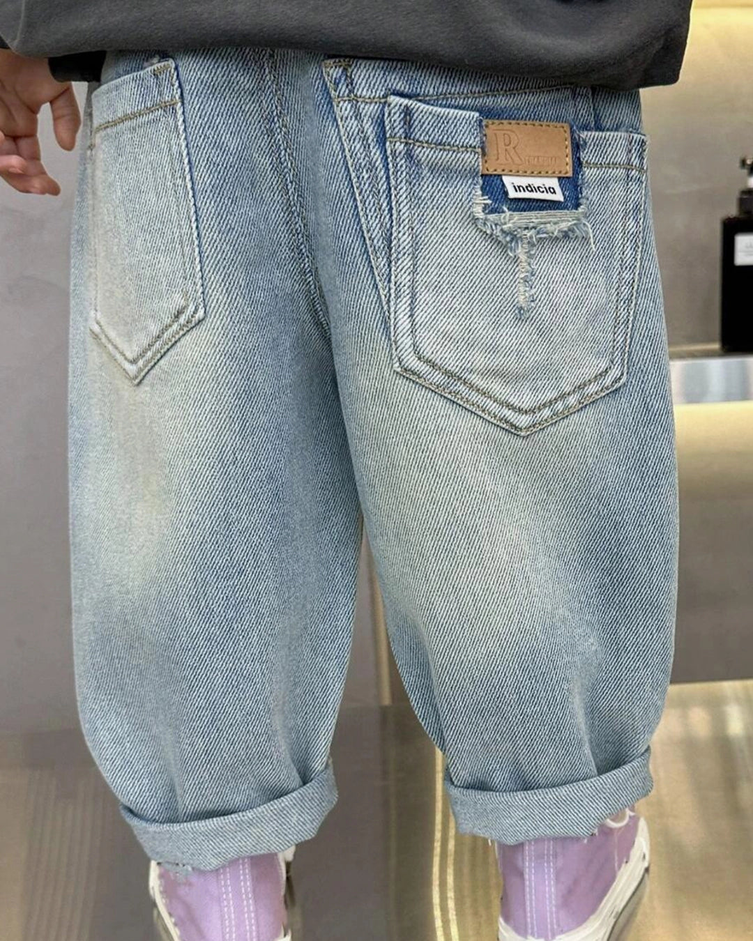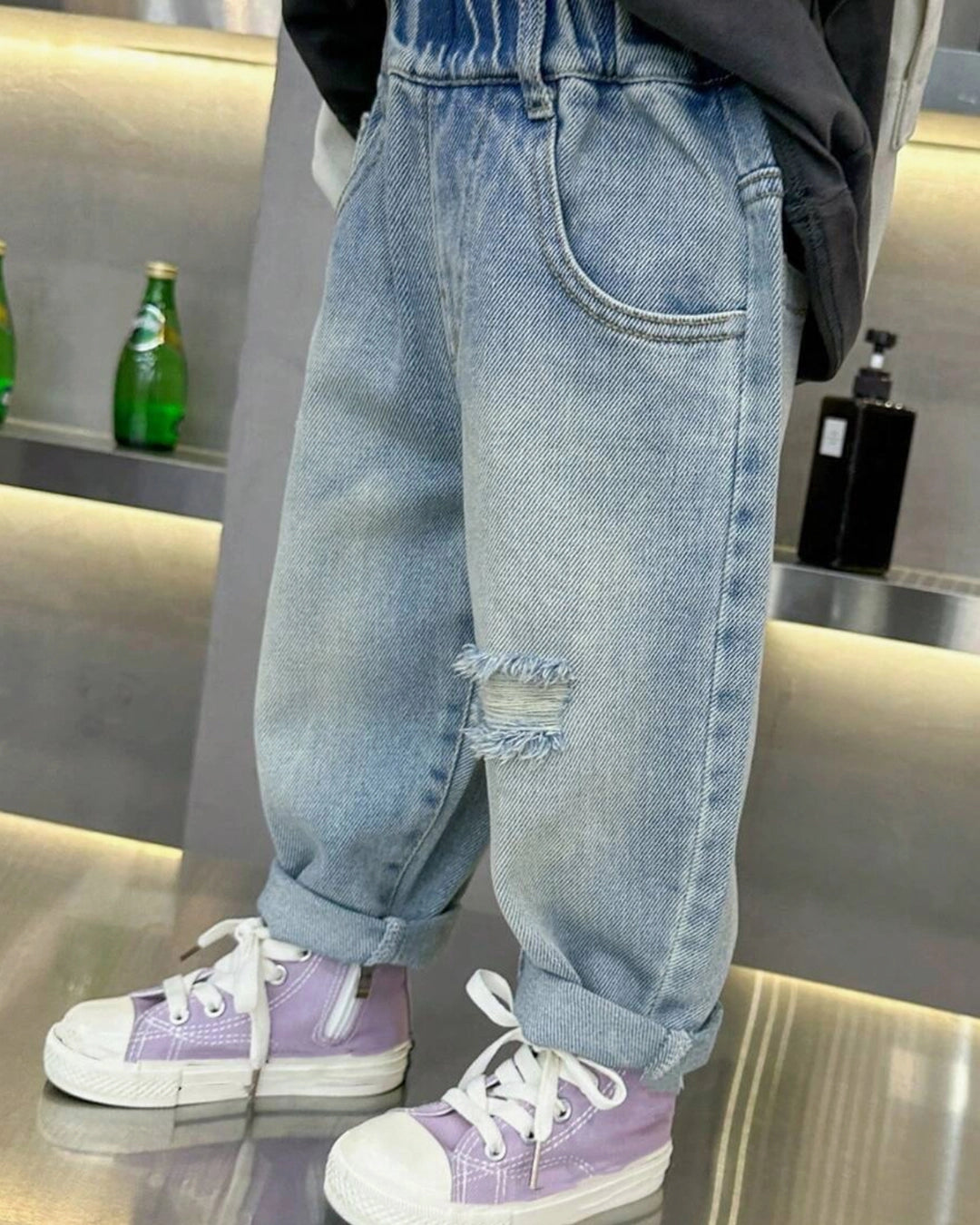 Simple and stylish distressed jeans for boys. Lightweight denim, perfect for everyday wear in spring and summer. Easy to match with tees and sneakers.