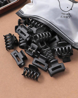 Set of 20 stylish mini hair clips for girls in neutral coffee tones. Includes square and moon shapes. Perfect for school, college, or casual everyday looks. Random mix of colors and styles.