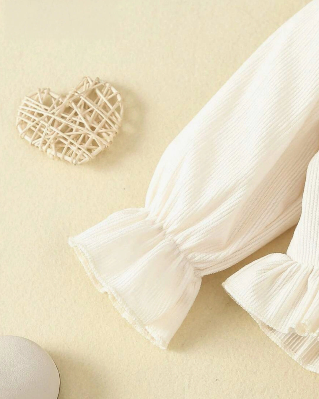 Charming baby girl outfit featuring a 3D flower decorated bell sleeve top paired with matching bell-bottom pants. Soft, trendy, and perfect for casual outings, photoshoots, and special occasions.