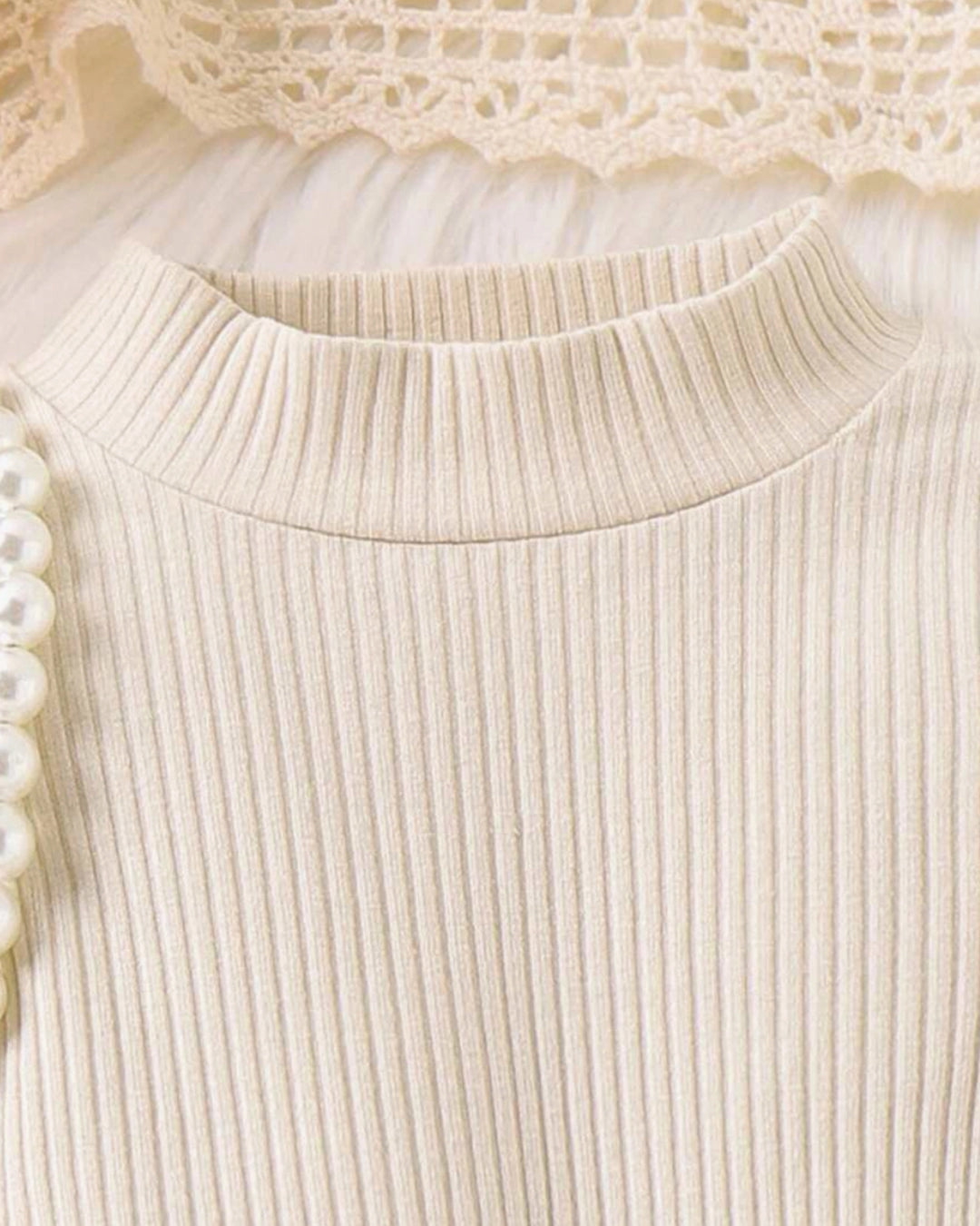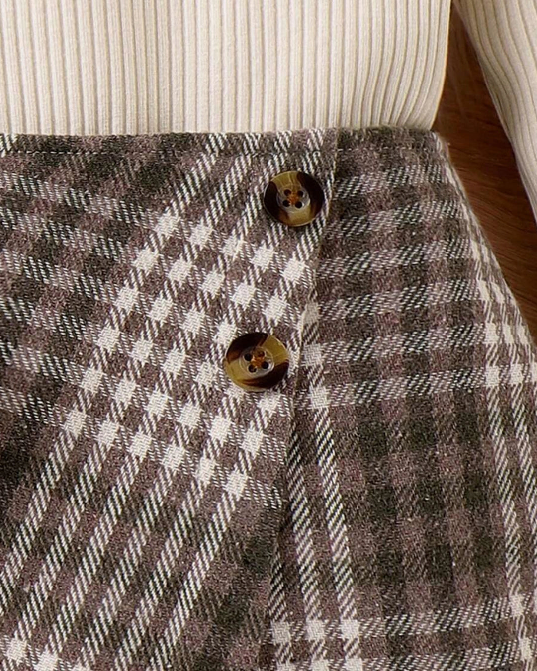 Charming 2-piece Christmas outfit for baby girls, featuring a soft mock neck tee paired with a stylish plaid asymmetrical hem skirt. Elegant and comfortable, perfect for festive occasions, family gatherings, and holiday celebrations.