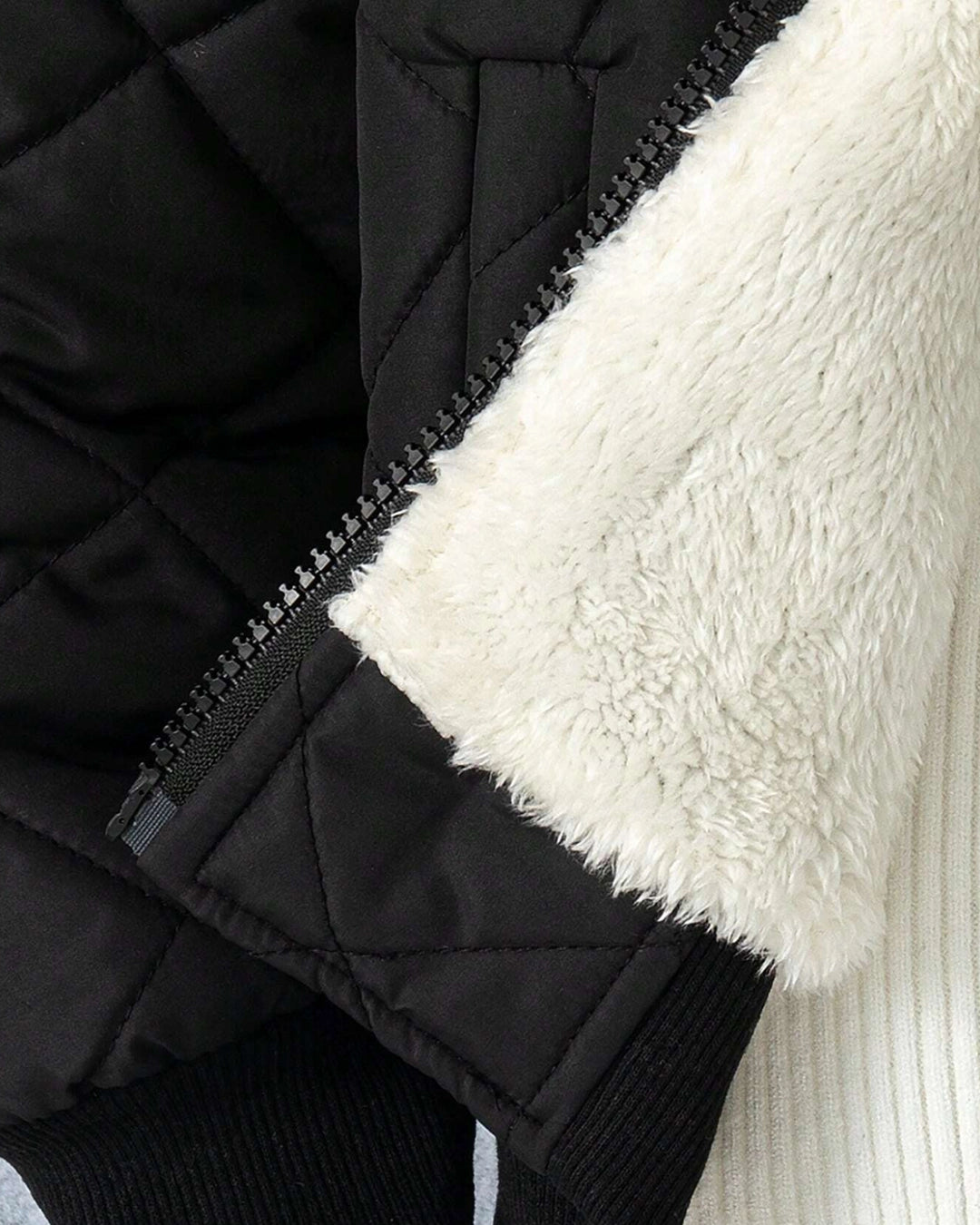 Warm padded jacket with soft fluffy lining for all-day comfort.