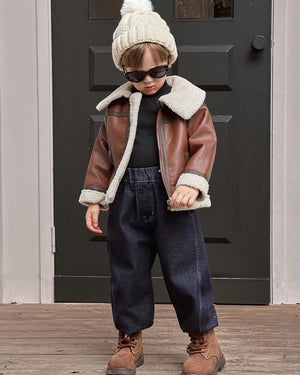 Boys PU Leather Jacket – Teddy Lined