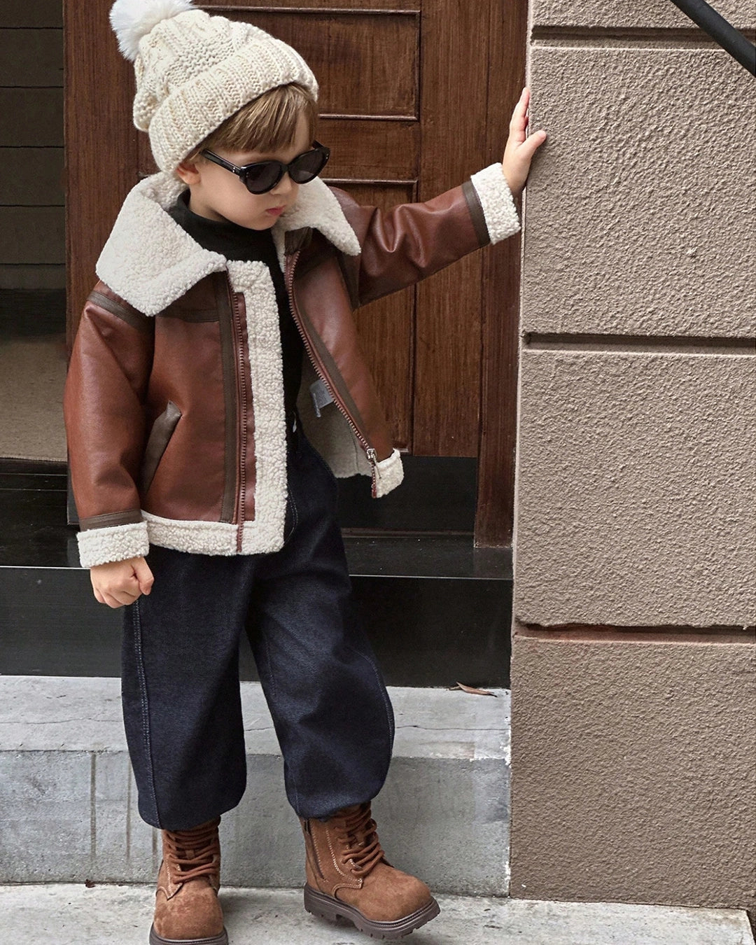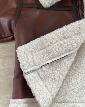 Stylish PU leather jacket with soft teddy lining for warmth and comfort.